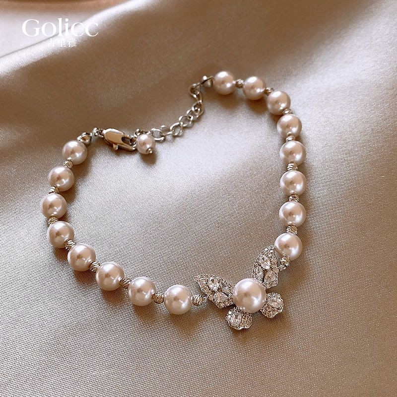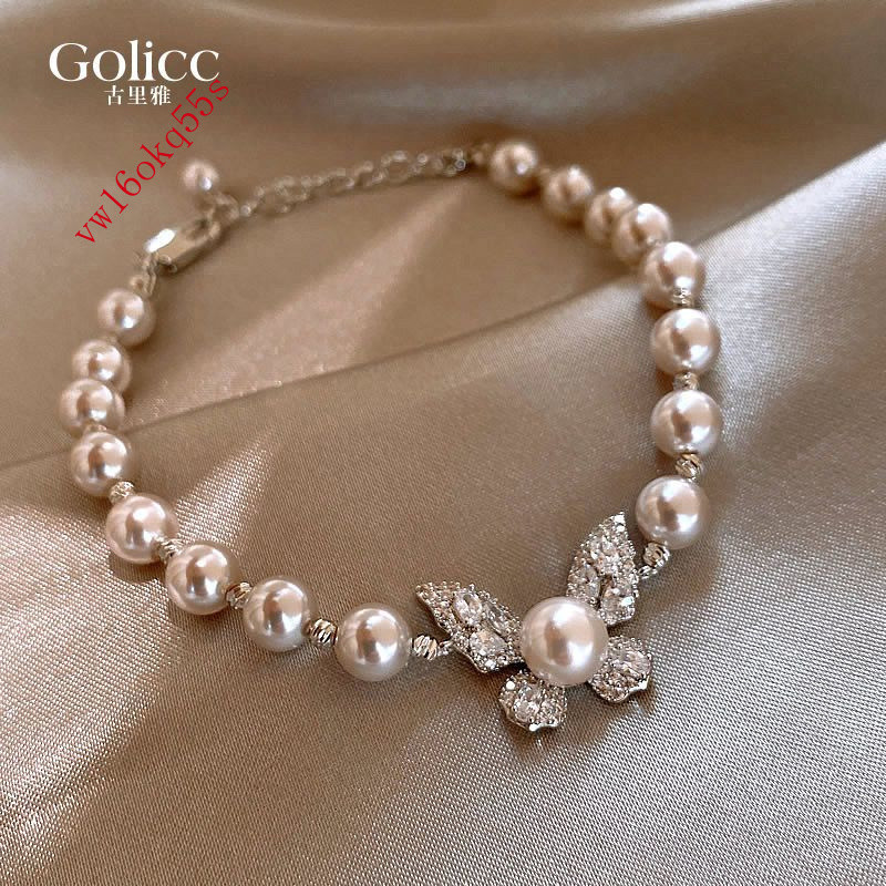 新款飾品 古裏雅曼塔玫瑰色微鑲蝴蝶珍珠手鏈女款輕奢小衆設計夏季精緻手飾