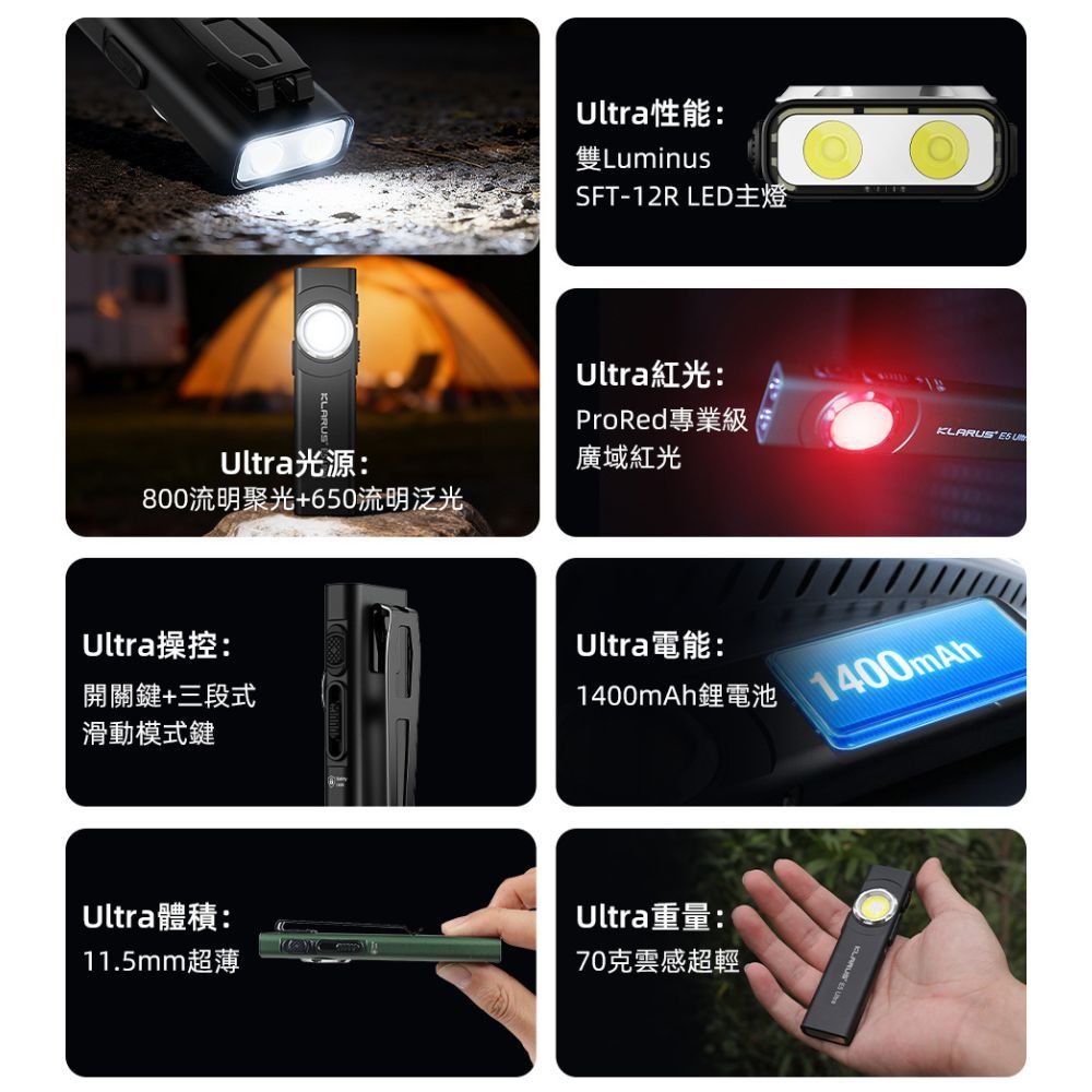 【電筒王】KLARUS E5 Ultra 三光源輕薄手電筒 800流明 120米 快速切換 磁吸 聚泛光/紅光/COB