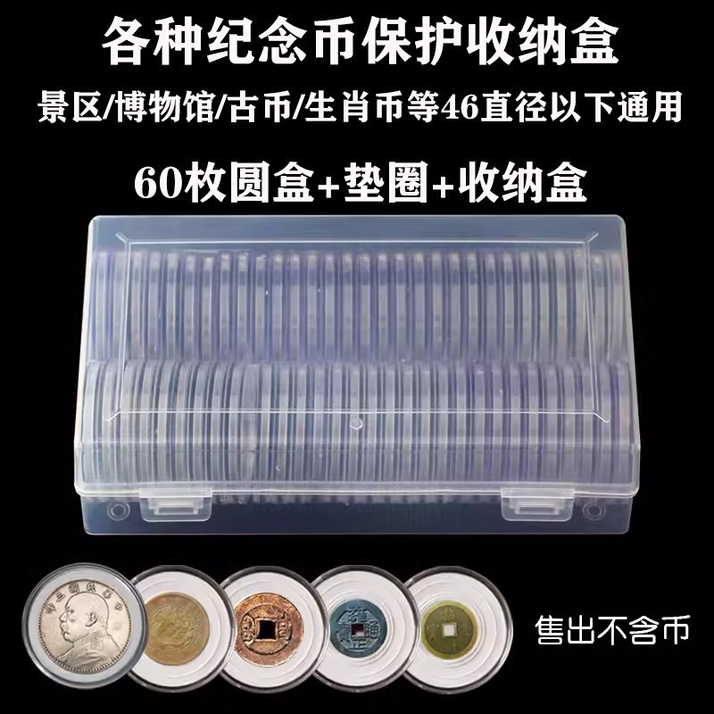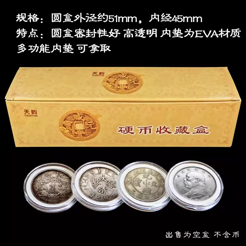 袁大頭銀元收藏盒可調節古銅錢幣虎年紀念幣保護盒圓盒收納空盒RPKZ