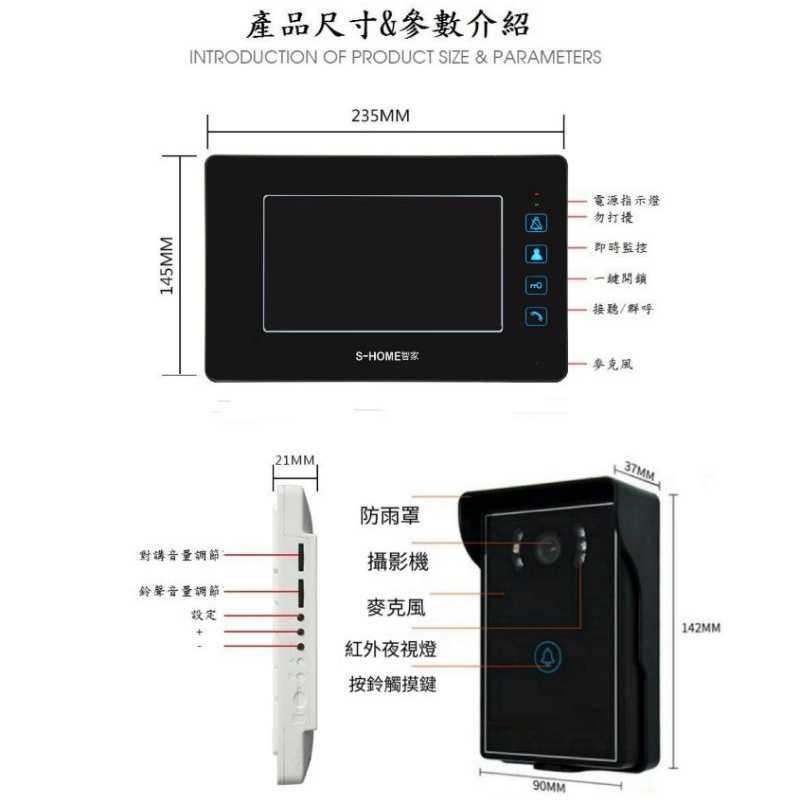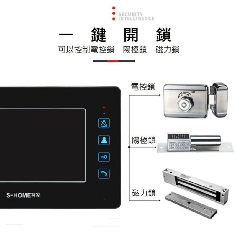 可視門鈴影像對講機/觸摸七吋室內影像機(一對一)/門鈴/帶開電鎖功能-支援桃園以北施工(費用另計)