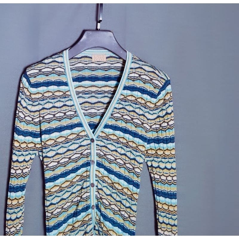 藍色黃色織紋感線條針織外套 B0323【點點藏物】