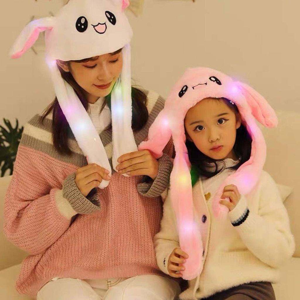 可爱耳朵会動帽子 兔子帽 毛絨发光兔耳朵帽子 可動耳朵玩具帽子 動物帽子