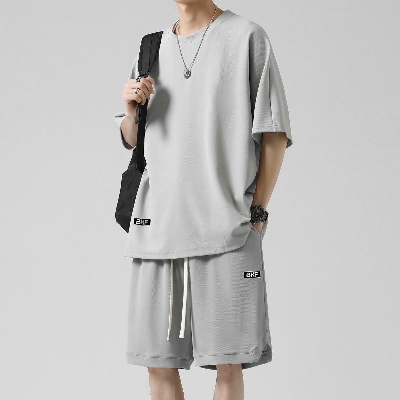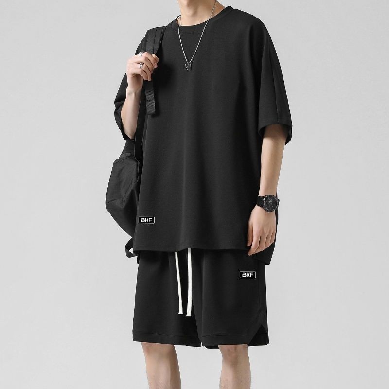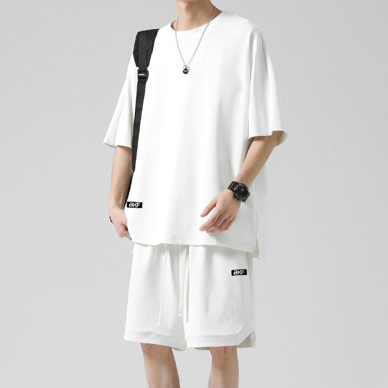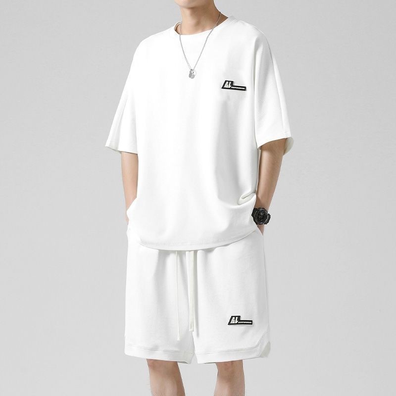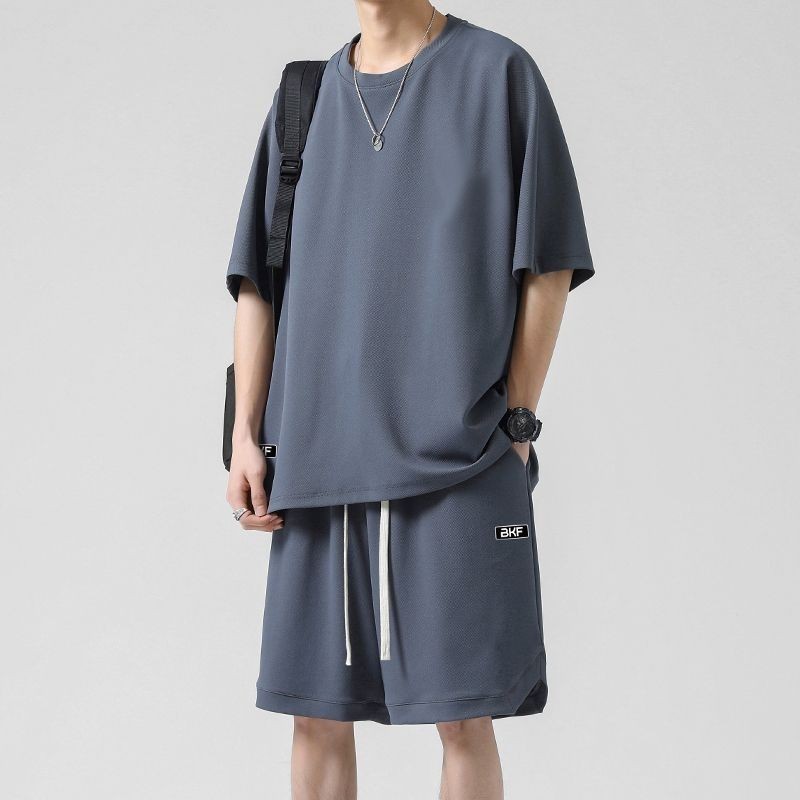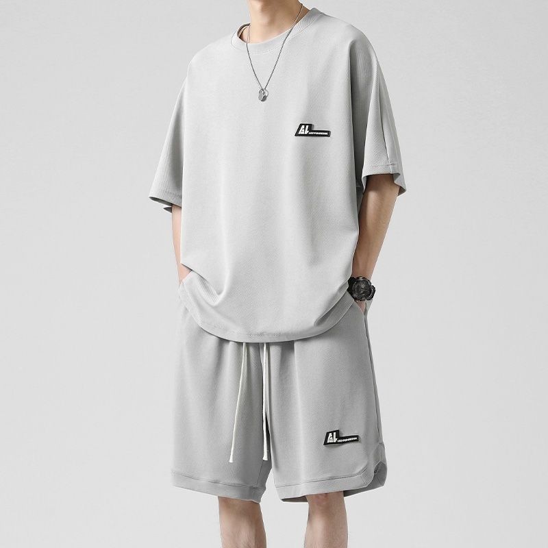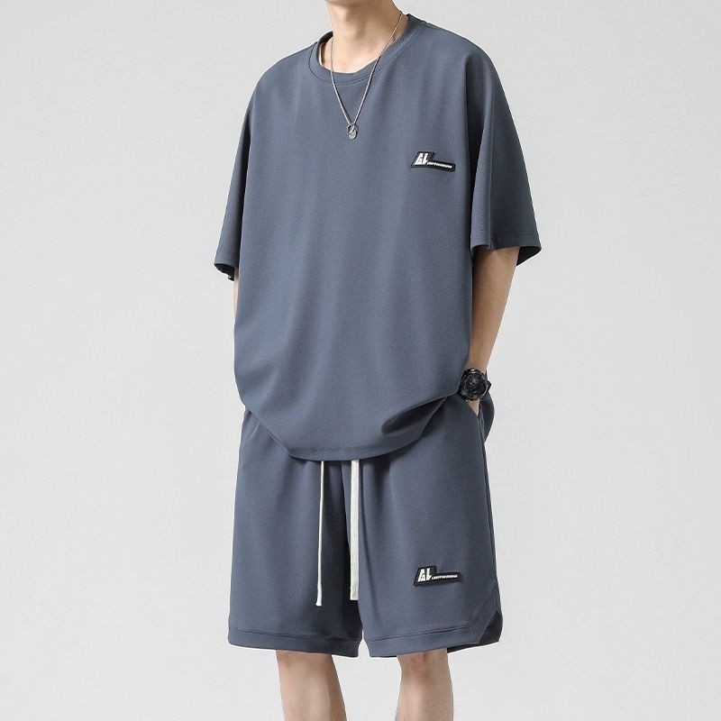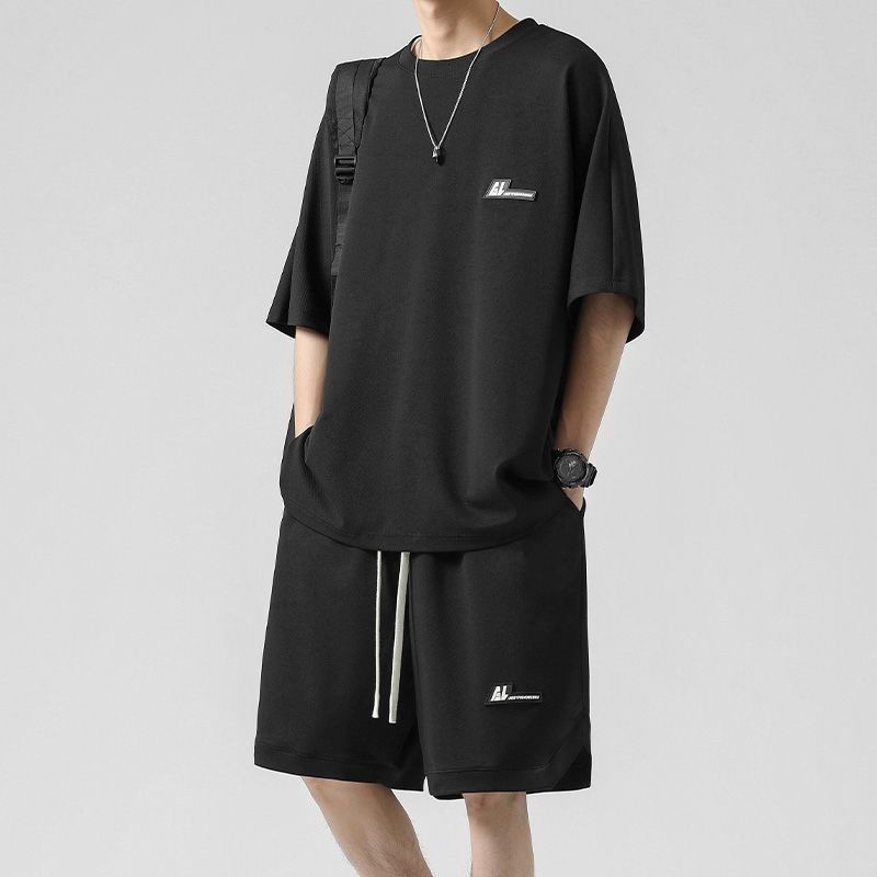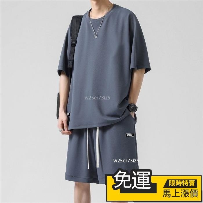 🔥台灣出货🔥150公斤 8XL大尺碼印花圓領短袖套裝男 肥佬運動褲 夏季冰絲涼感運動休閒套裝男青少年寬鬆大碼短袖T恤