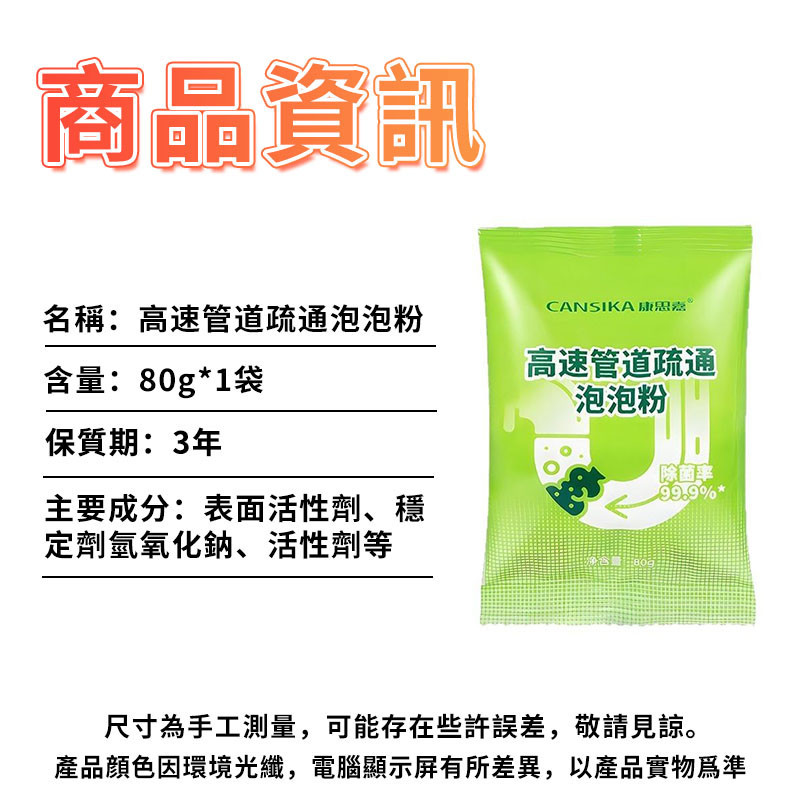 台灣隔日達【康思嘉CS管道高速疏通泡泡粉 堵塞水管疏通劑 管道疏通劑 水管疏通劑 通水管 水管疏通粉 馬桶疏通劑 疏通粉