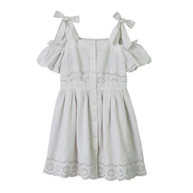 Evelyn 蝴蝶結布蕾絲洋裝 灰色 f size 全新