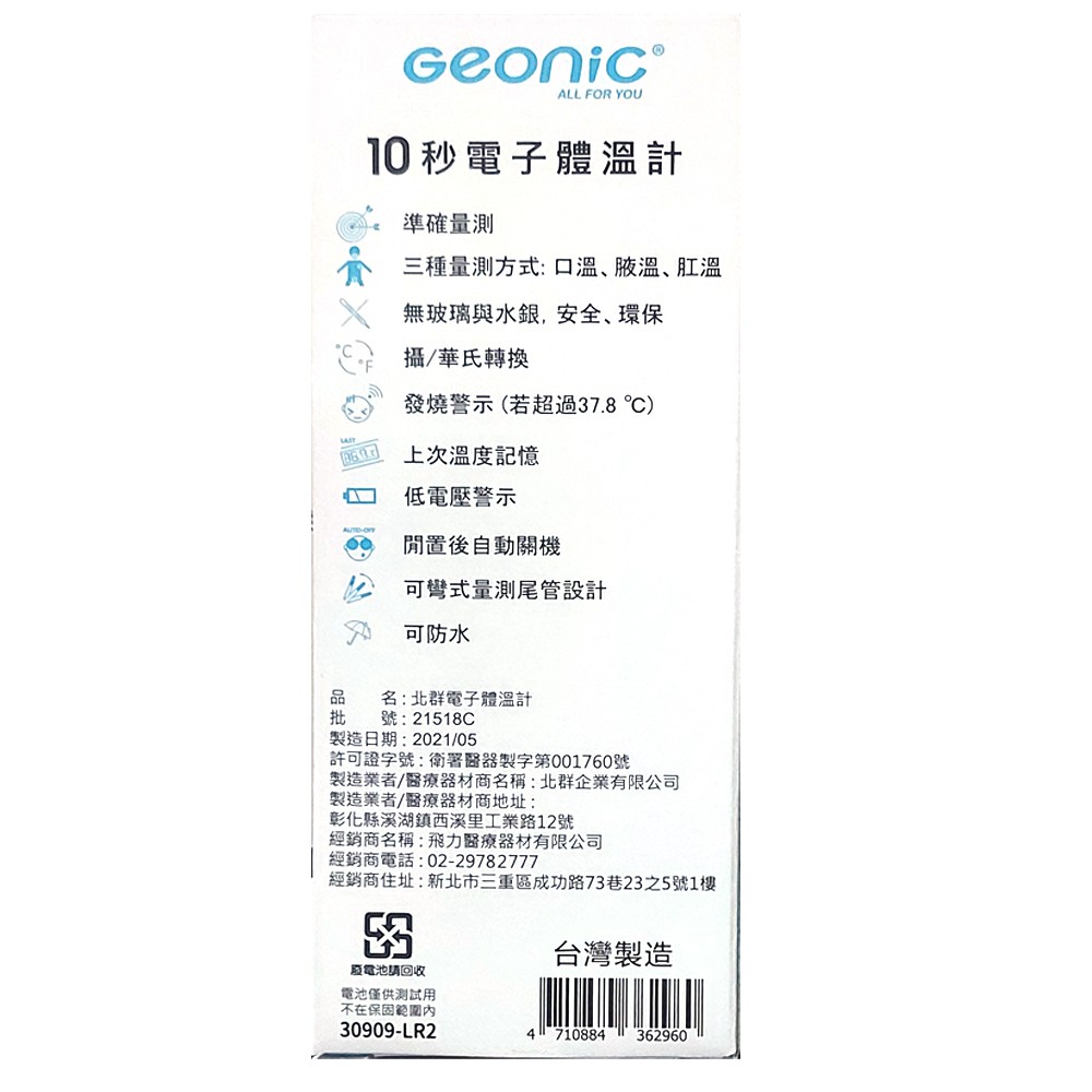 【Geonic 北群】10秒快速電子體溫計
