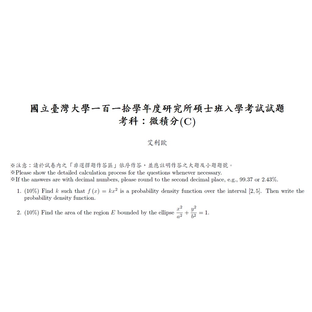 [艾利歐詳解] 台大碩士班(微積分(C))詳解