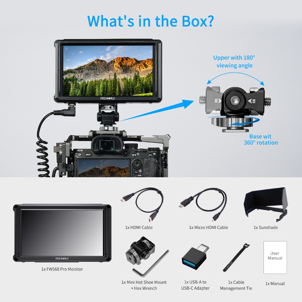 FEELWORLD FW568 PRO 6 英寸 1200nit 高亮度攝像機 DSLR 現場監視器,帶 F750 44