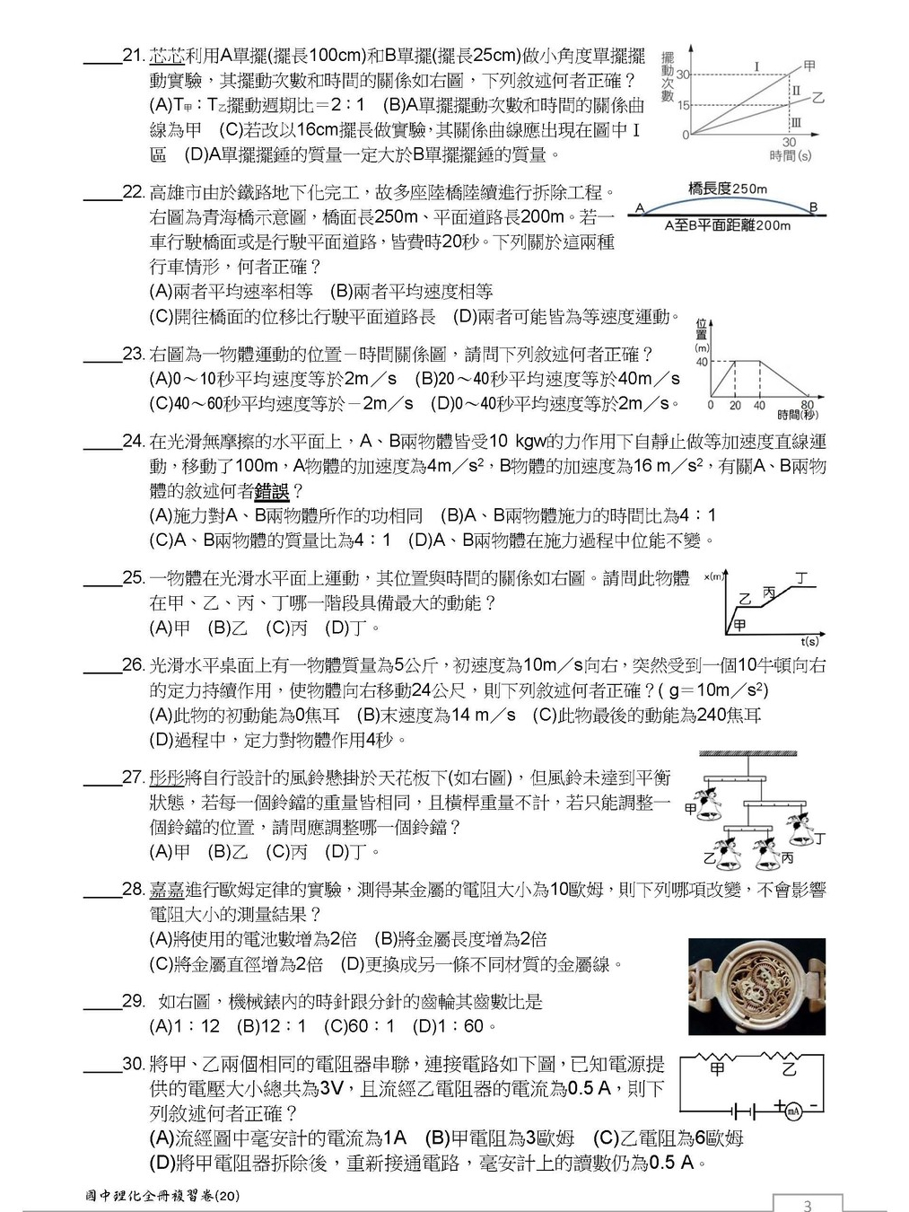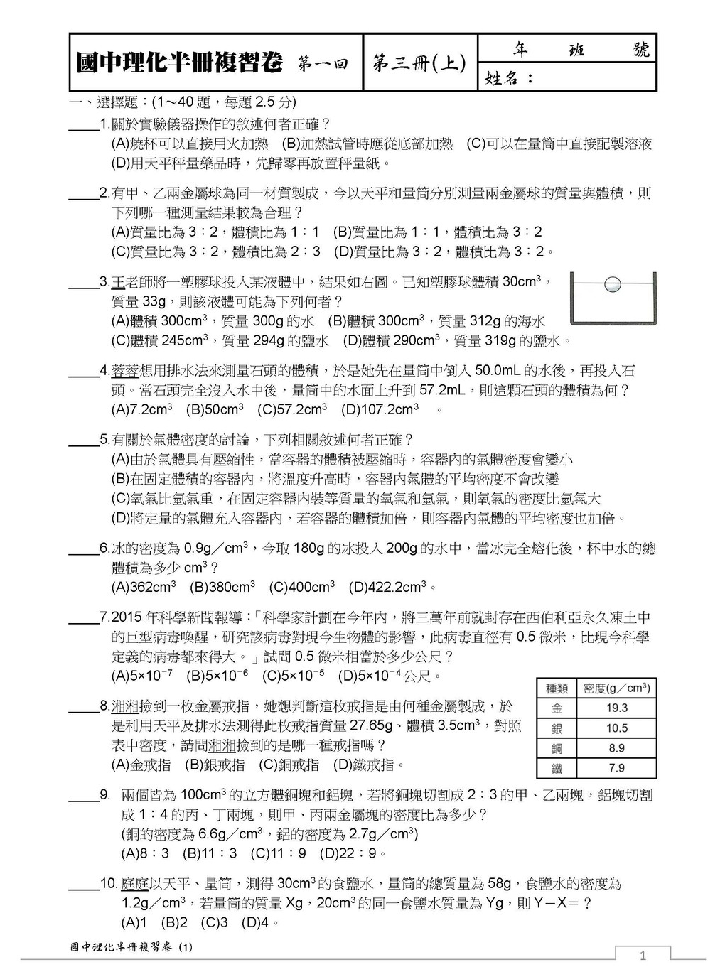 升高中理化_會考複習_半冊測驗卷(適合考前刷題練手感找漏洞)