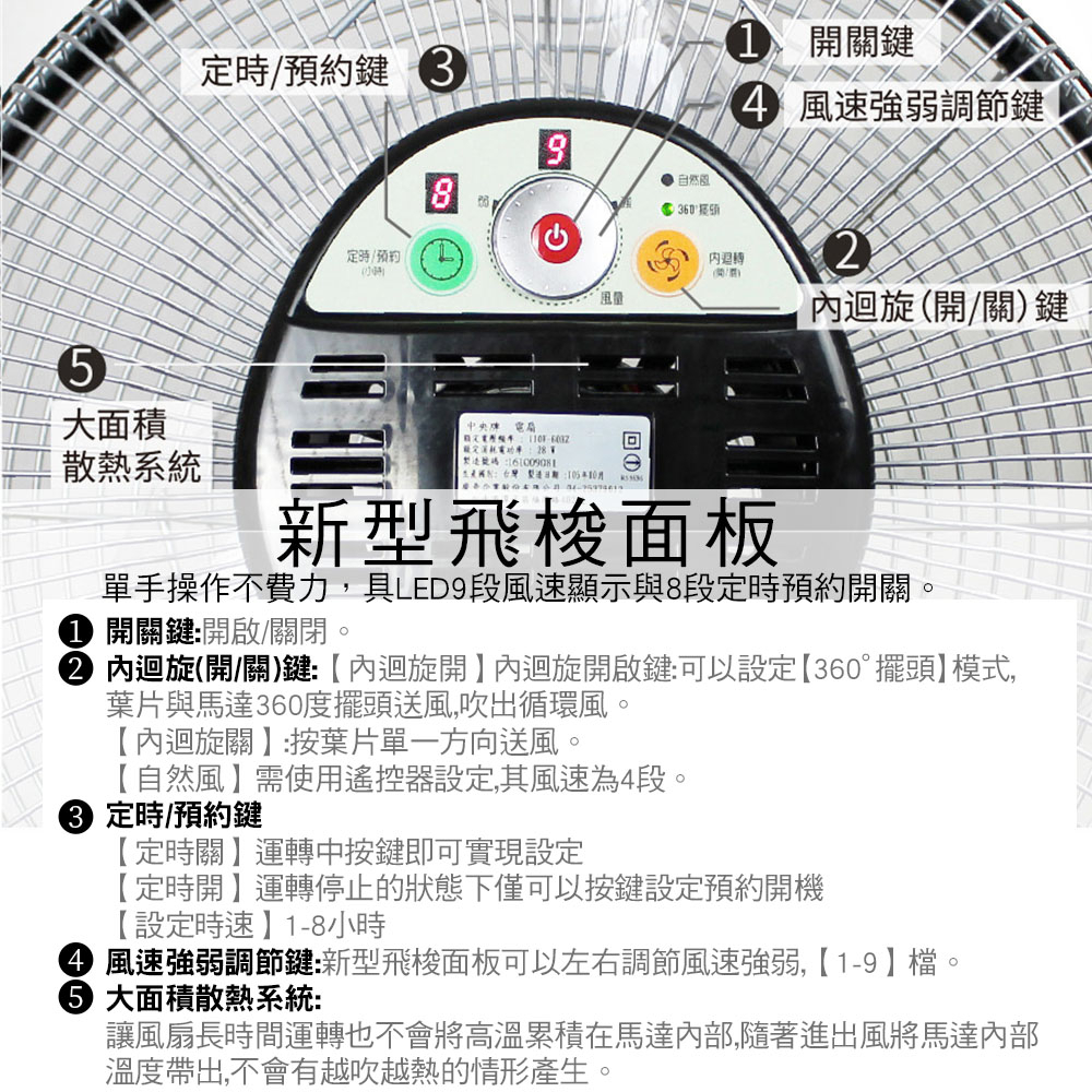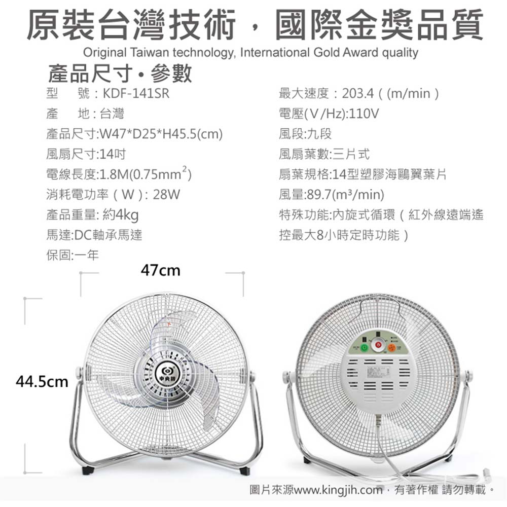 中央牌 14吋DC內旋式遙控循環桌扇 KDF-141SR 絢麗白/貴族黑