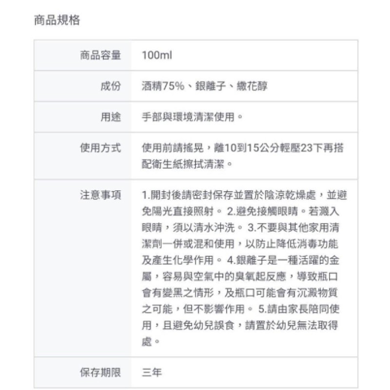 現貨+預購 銀離子抗菌噴霧(含酒精75%)100ml