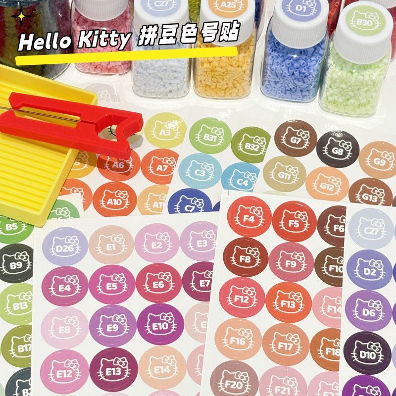 現貨 速出!新款 295 色 Hello Kitty 凱蒂貓 圓形 拼豆 色號 貼紙 Mard 可愛 融合豆 通用 色卡