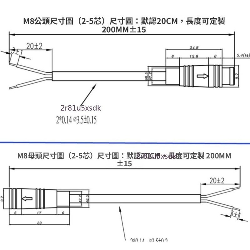 【可開發票/支持定製】連接器 航空 插頭 防水M8-2 3 4針 5P6芯 公母頭 對接式 注塑式 帶線 接頭