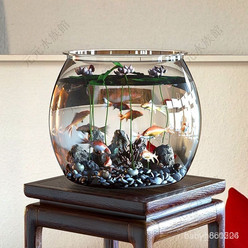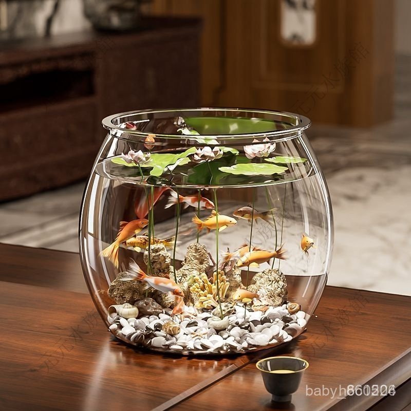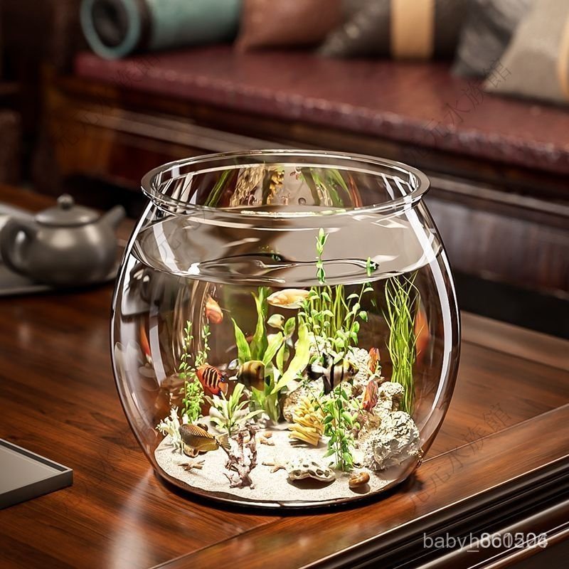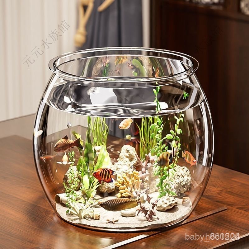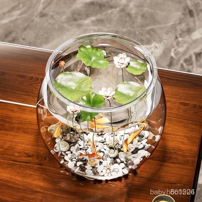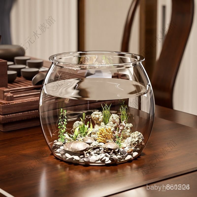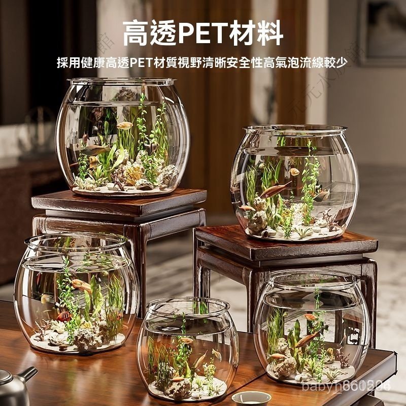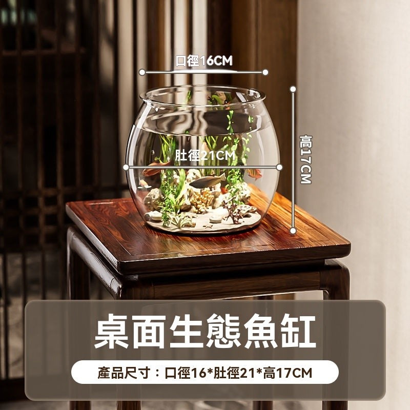 生態魚缸 水族缸 金魚缸 鬥魚魚缸 迷你魚缸 懶人魚缸 魚缸金魚缸家用客廳桌面高顔值透明觀賞生態水族箱創意圓形造景魚缸D