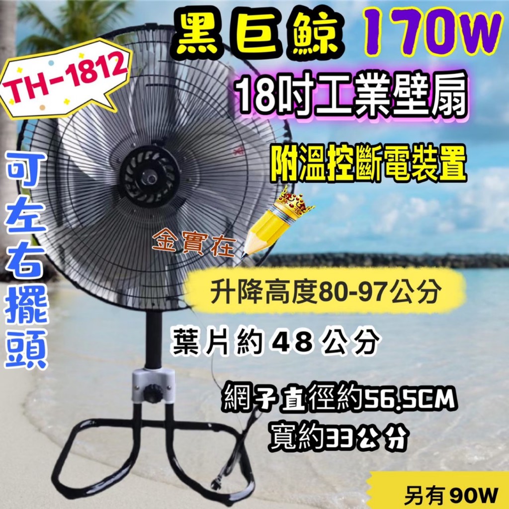 免運TH-1812 黑巨鯨18吋 170W 90W 140W 黑色升降電風扇 座立扇 擺頭扇 工業電扇 涼風扇 台灣製