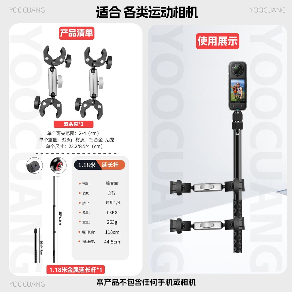 影石Insta360X5/4/3全景相機騎行支架鋁合金機車第三人稱自拍杆