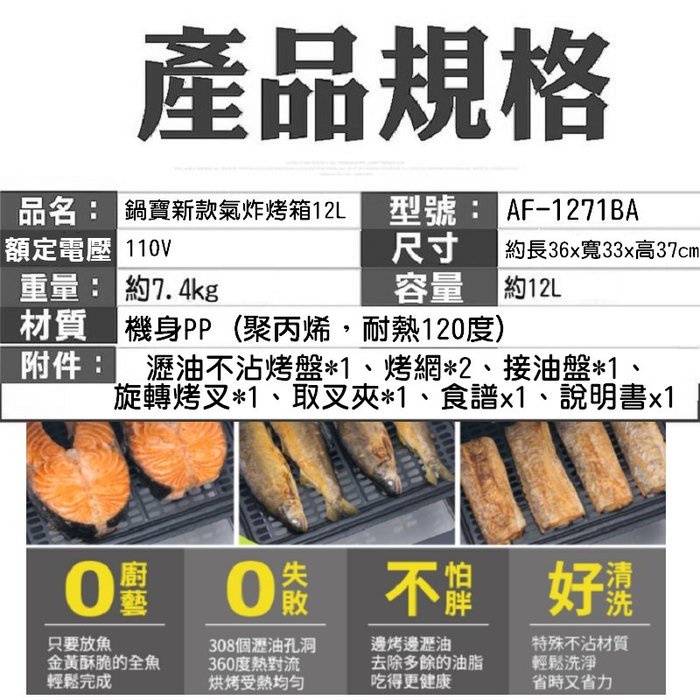 【現貨】新款鍋寶萬用12L 空氣烤箱 氣炸鍋 空氣炸鍋 空氣炸鍋 油炸鍋 廚房 AF-1271BA 興雲網購旗艦店