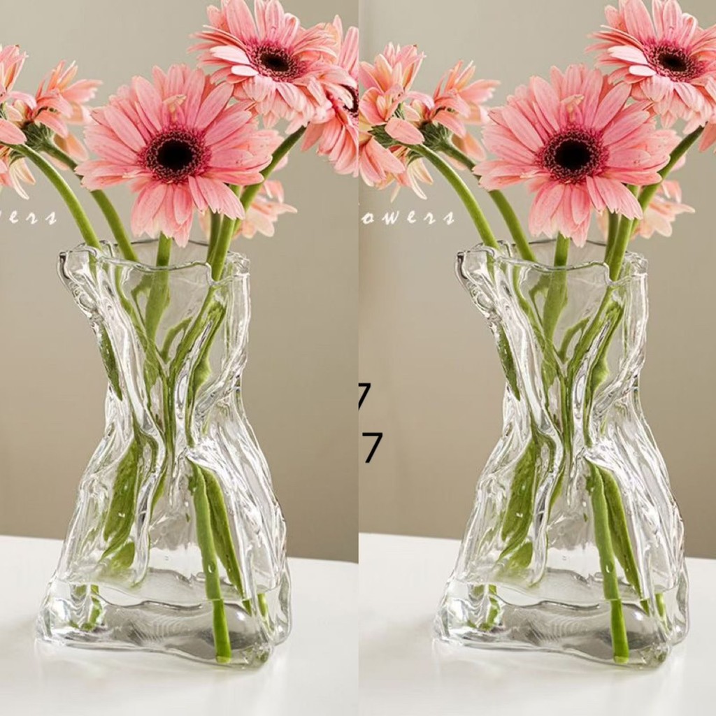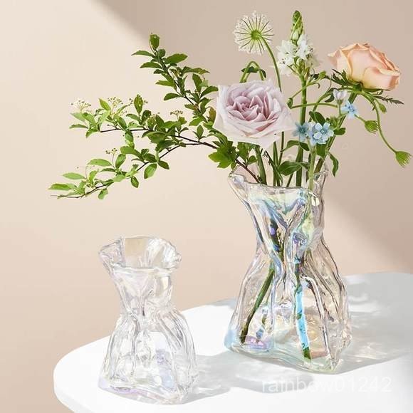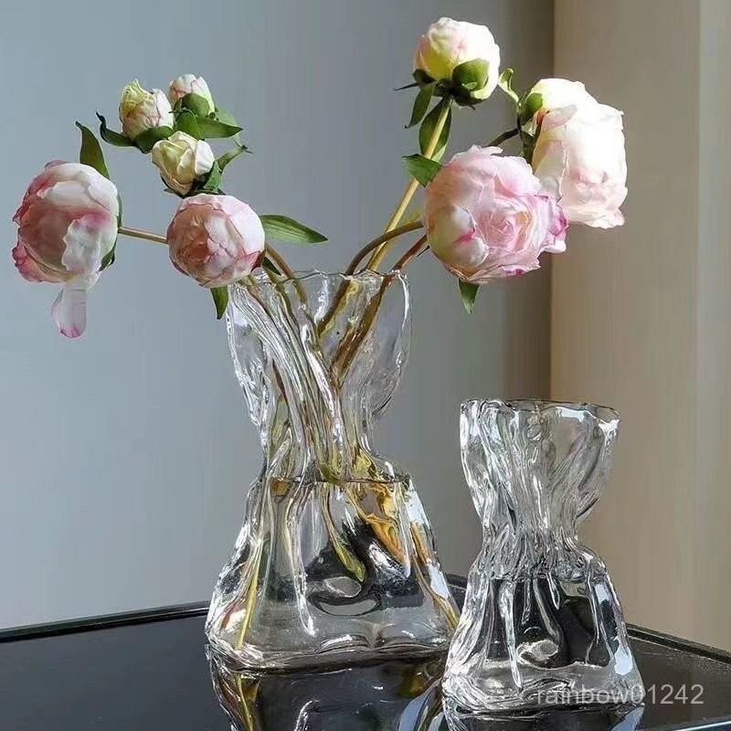高級感簡約創意不規則花瓶 透明玻璃客廳桌麵插花水養ins裝飾擺件 L1AM