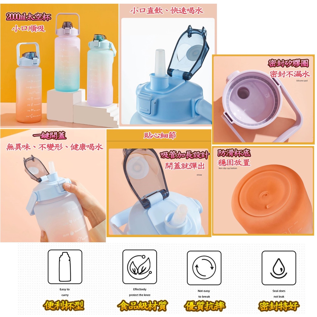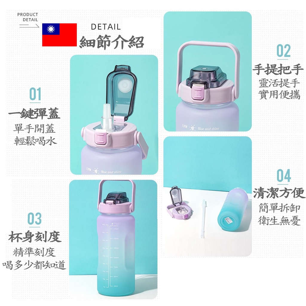 台灣公司現貨🔥 漸層水壺 大容量水壺 2000ml水壺 磨砂 漸變水壺 運動水壺 漸層水杯 健身水壺 彈蓋水壺 聖誕節