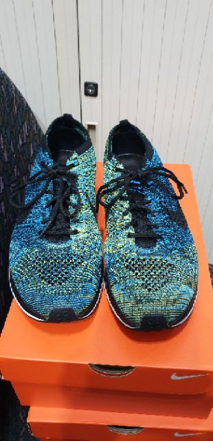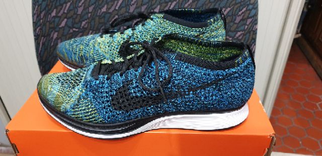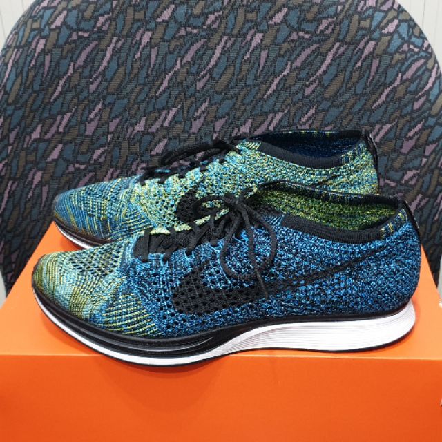 NIKE Flyknit Racer 526628-405 藍綠 飛線編織 輕量慢跑 US9