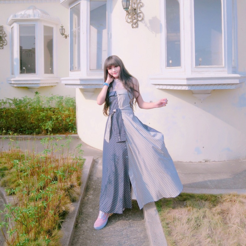 Marjorie正反面設計感異色格紋拼接綁帶洋裝 原價2980含吊牌
