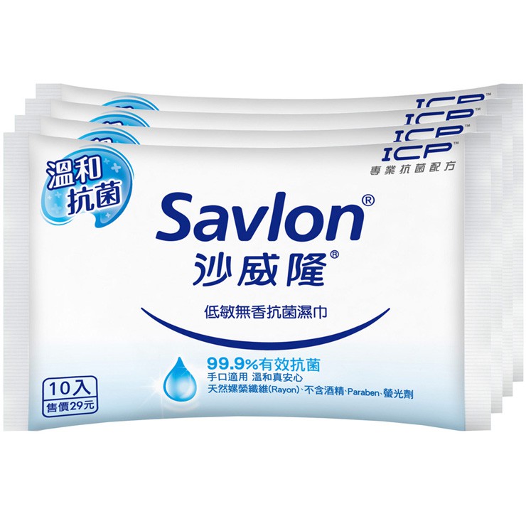 沙威隆 抗菌濕巾 10片X4包 (共兩款)