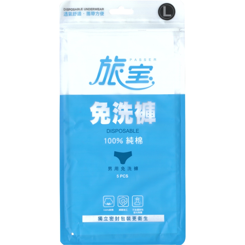 旅寶 男用純棉免洗褲 米白色 5入 (共三款)