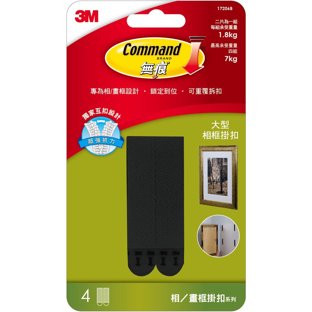 3M 大型相框無痕掛扣 黑色 4入