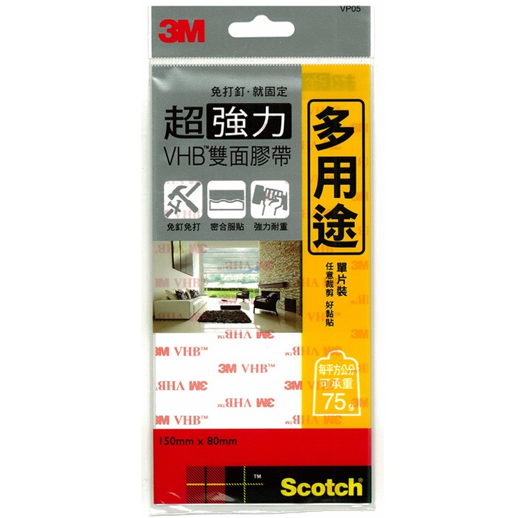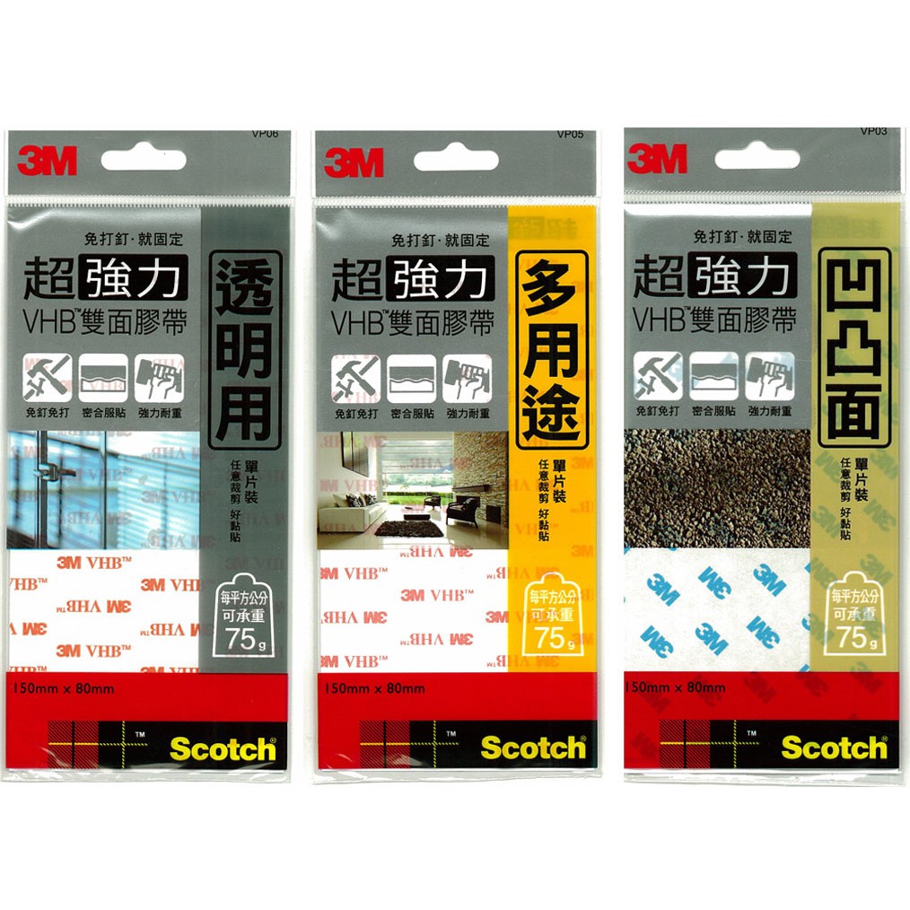 3M Scotch VHB 超強力雙面膠帶 單片裝 150mmX80mm (共三款)