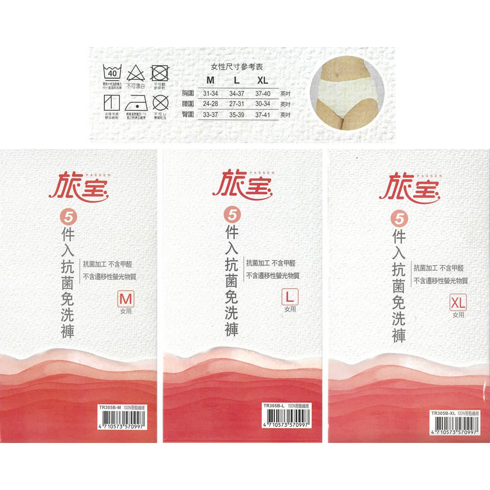 旅寶 女用抗菌免洗褲 米白色 5入 (共三款)