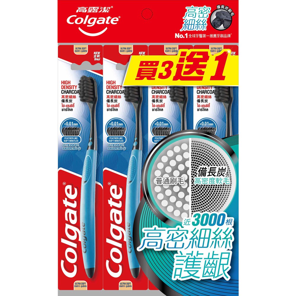 【顏色隨機出貨】高露潔 高密細絲護齦備長炭 超級軟毛 牙刷 (1入/3入/4入)