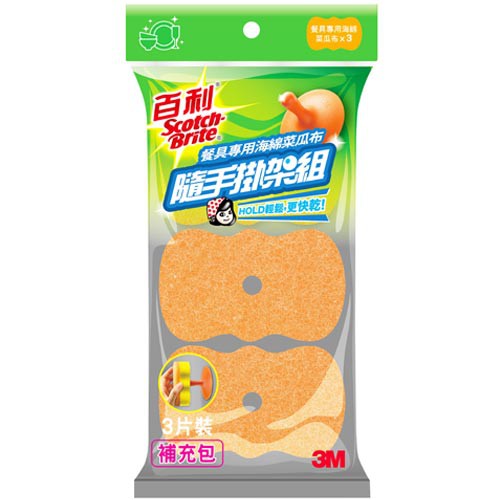 3M 百利 隨手掛架組 餐具專用海棉菜瓜布 補充包 3片裝