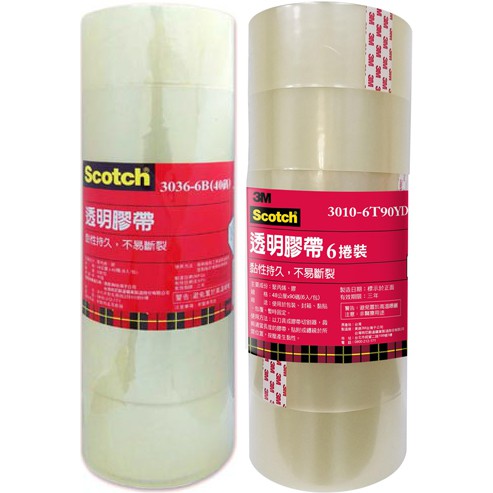 3M Scotch 透明膠帶 直筒封箱膠帶 6入 (共兩款)