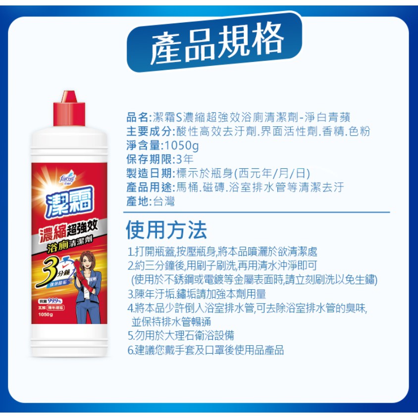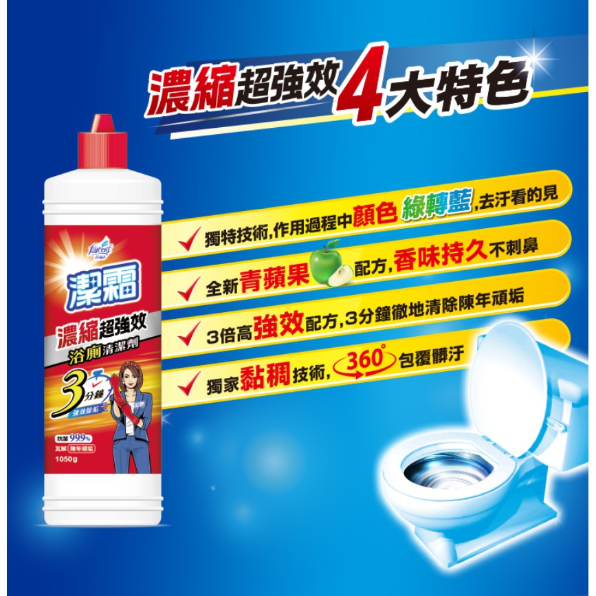 潔霜S 濃縮超強效浴廁清潔劑 淨白青蘋 1050g