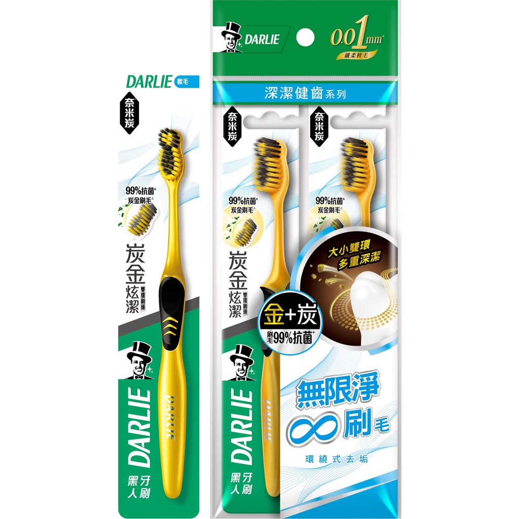 【顏色隨機出貨】好來DARLIE 炭金炫潔 纖細軟毛 牙刷 (1入/2入)