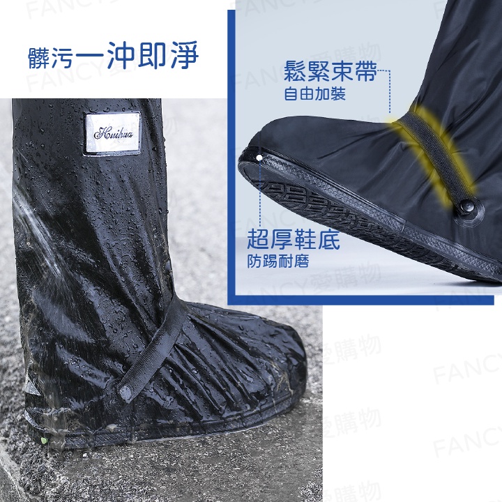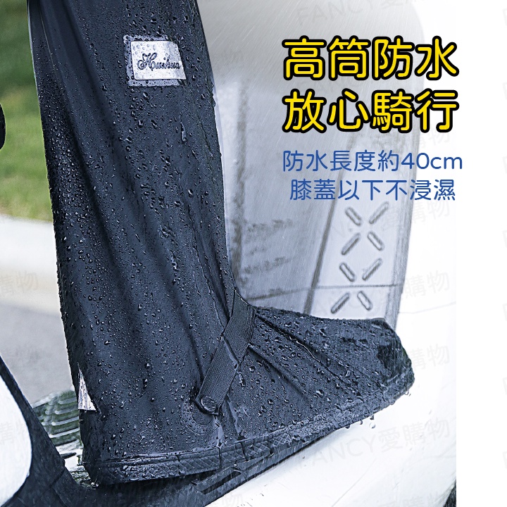 【FANCY愛購物 高筒防水雨鞋套】鞋底耐磨加厚防滑紋 防滲水 鞋套 高筒軟雨鞋 鬆緊帶好穿脫 現貨隔日到