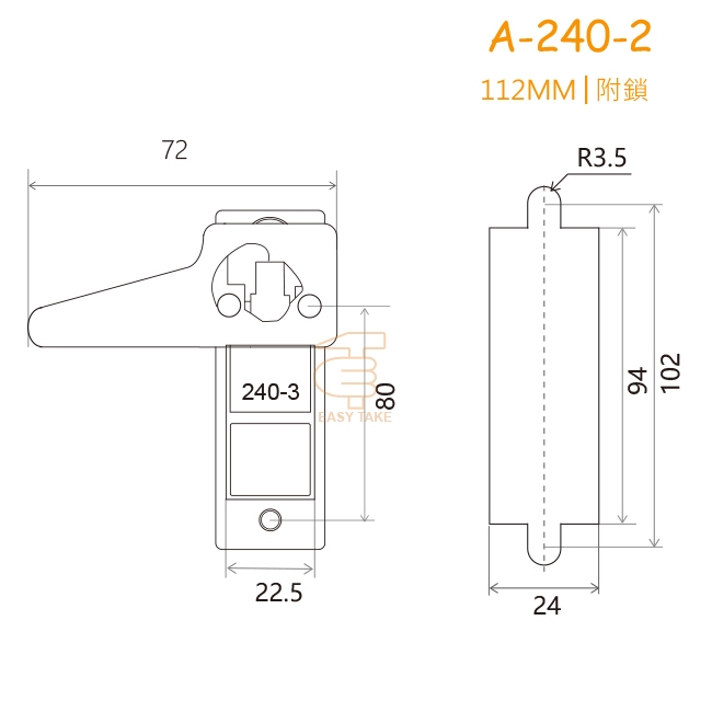壓扣式把手 (附鎖) 112mm 附鐵片 配電箱鎖 平面鎖 電氣箱鎖 開關箱 門鎖 把手