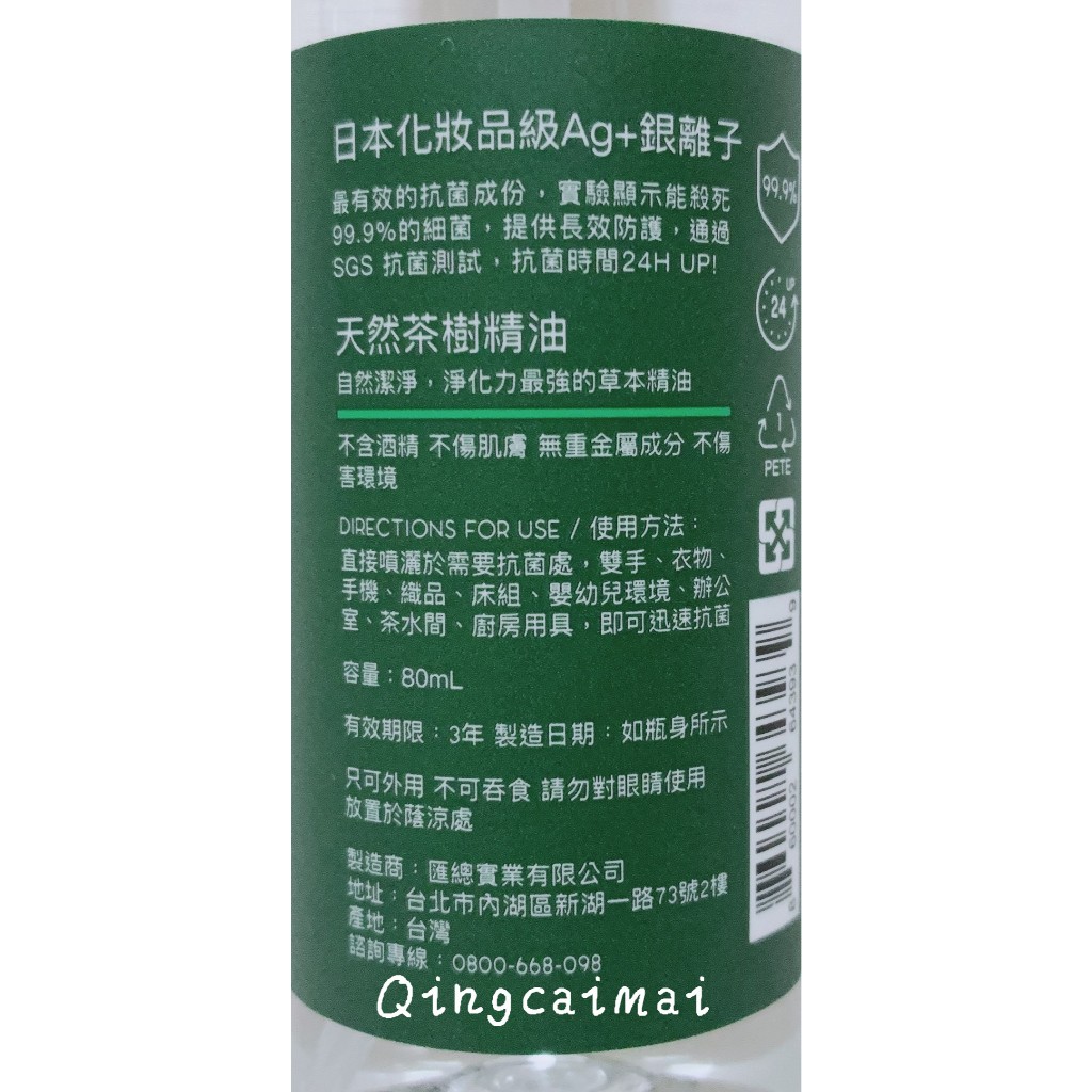 Moonlight 莯光 Ag+銀離子茶樹精油抗菌噴霧 銀離子茶樹抗菌噴霧 80ml
