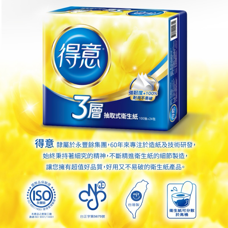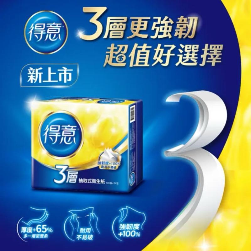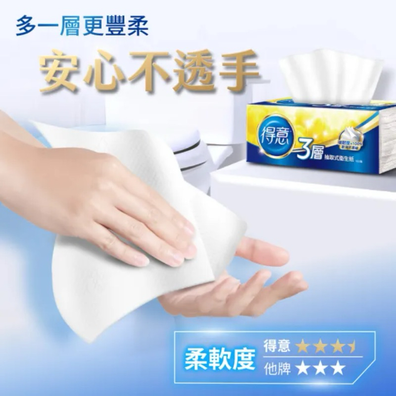代購免運【得意】三層抽取式衛生紙(100抽x70包)