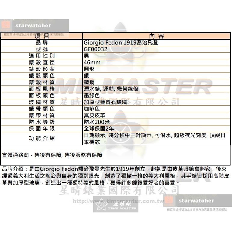 GiorgioFedon1919手錶,編號GF00032,46mm銀錶殼,咖啡色錶帶款