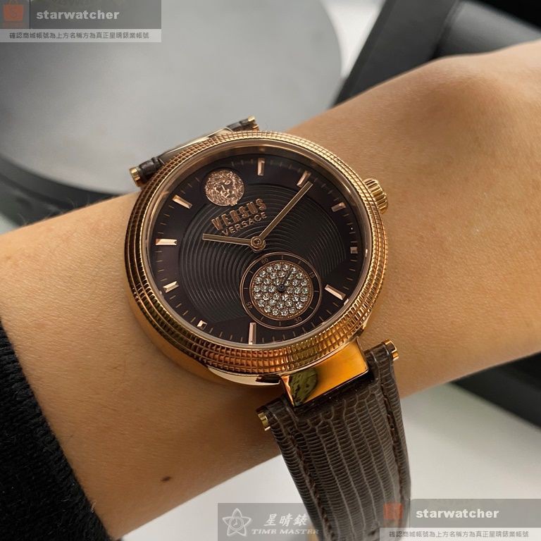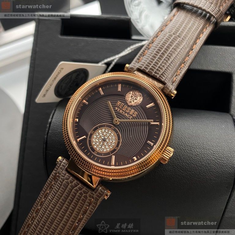 VERSUS VERSACE凡賽斯女錶,編號VV00292,40mm玫瑰金錶殼,咖啡色錶帶款