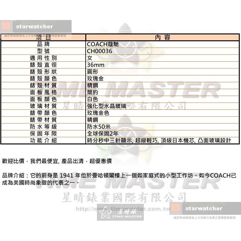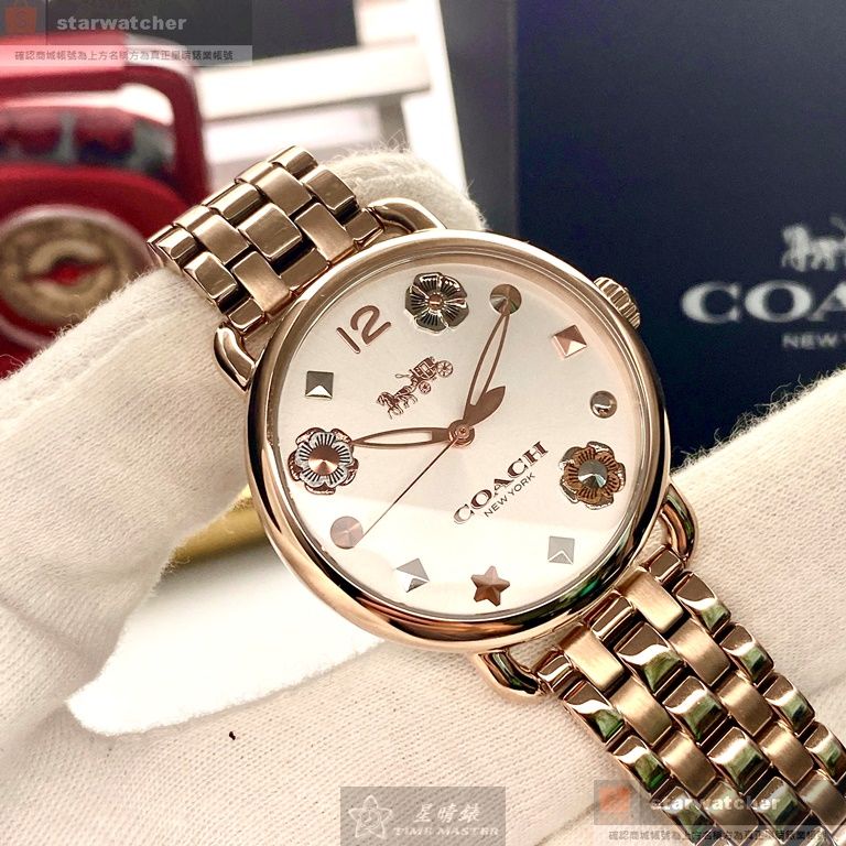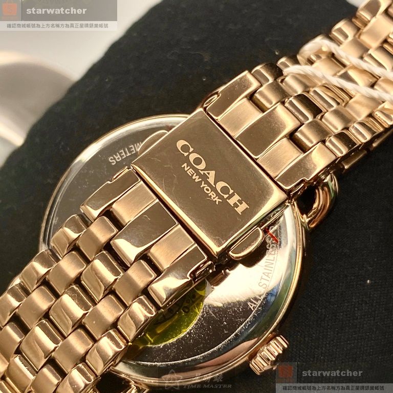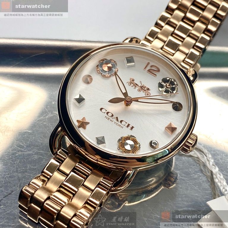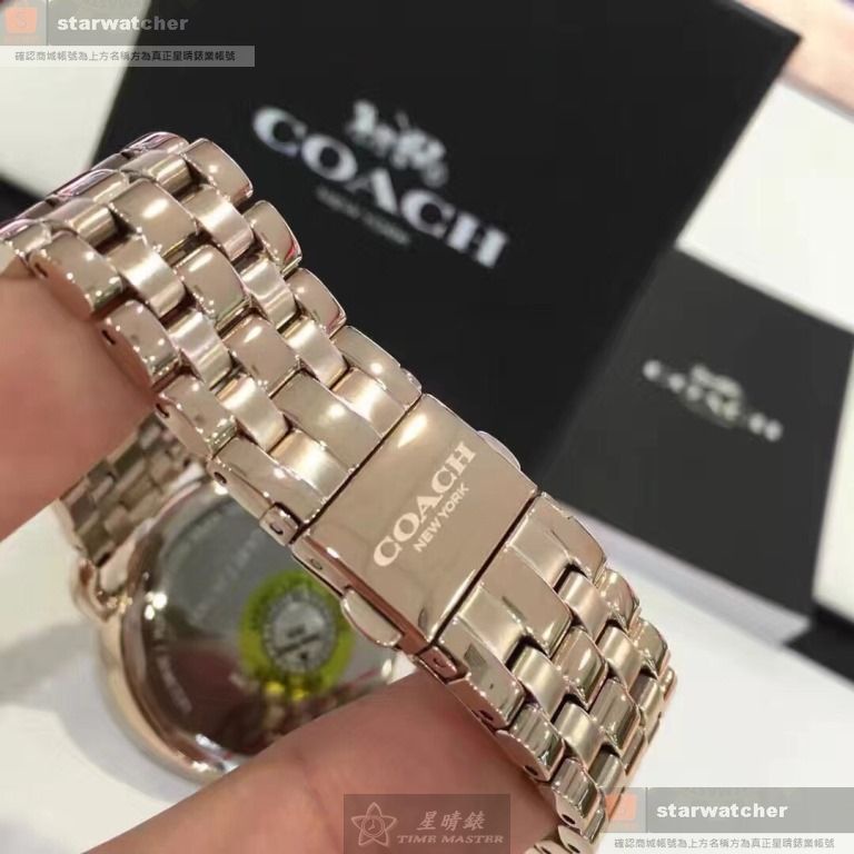 COACH手錶,編號CH00036,36mm玫瑰金圓形精鋼錶殼,白色簡約錶面,玫瑰金色精鋼錶帶款