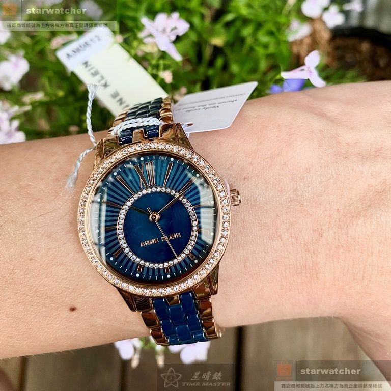AnneKlein手錶,編號AN00612,28mm玫瑰金圓形精鋼錶殼,變色簡約, 貝母錶面,玫瑰金色精鋼錶帶款