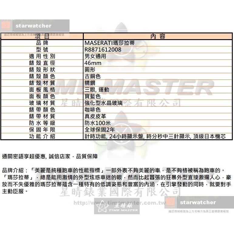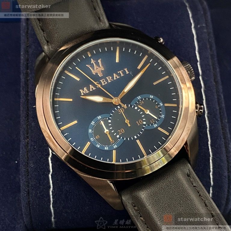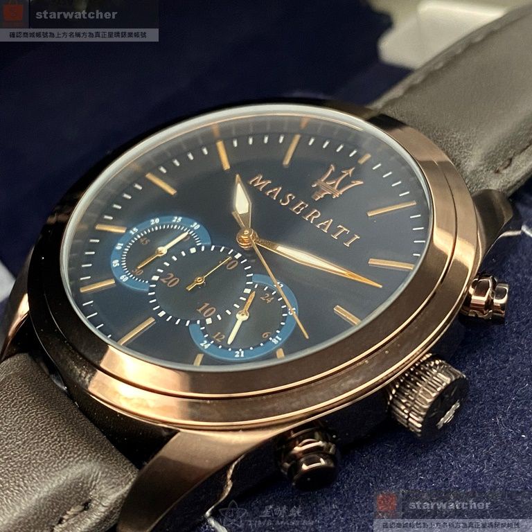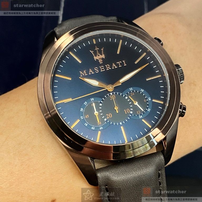 MASERATI手錶,編號R8871612008,46mm古銅色錶殼,咖啡色錶帶款