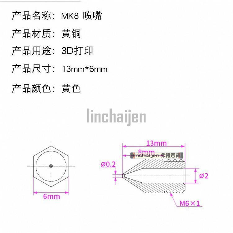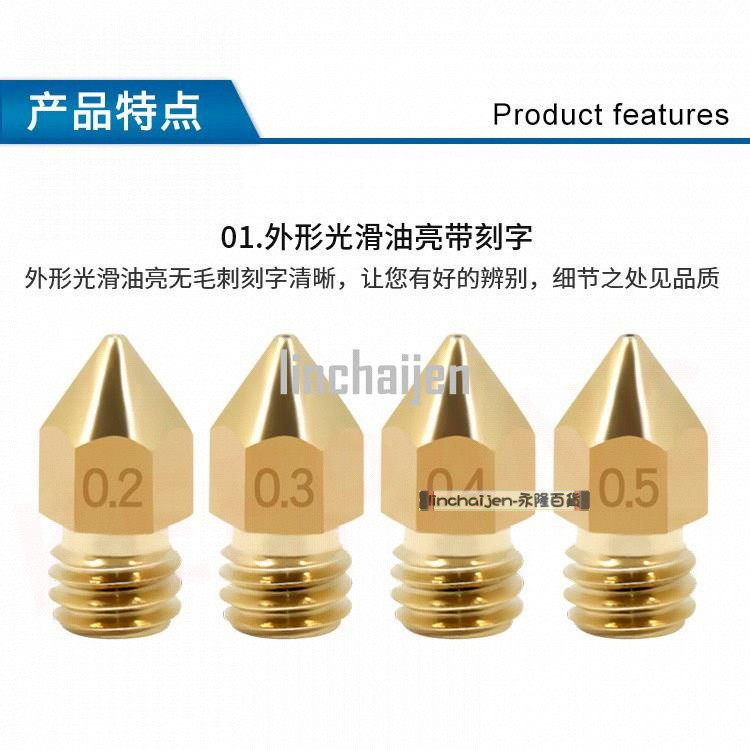 【可樂.可樂】電子16883D打印機專用 全金屬尖頭黃銅噴嘴 Mk8 1.75/3MM材料刻字 M6螺紋 黃銅/不鏽鋼l