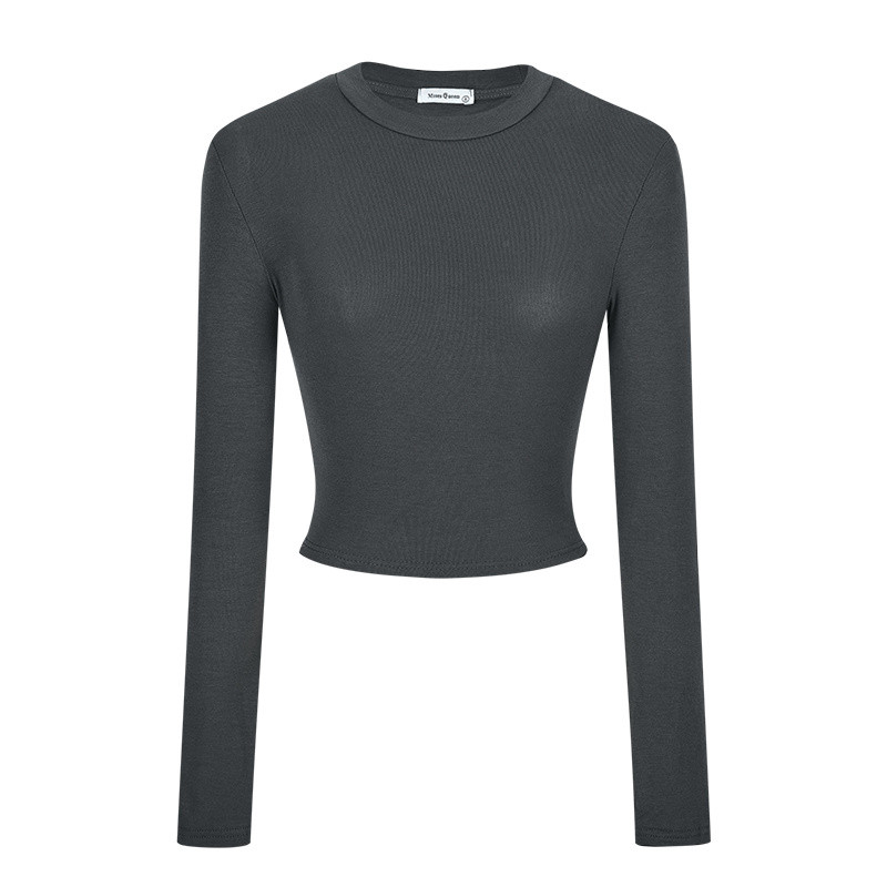 【臺中出貨】長袖t恤 5色入/美式磨毛內搭長袖短版上衣打底衫辣妹緊身露肚顯瘦上衣大尺碼女裝 10919/低價