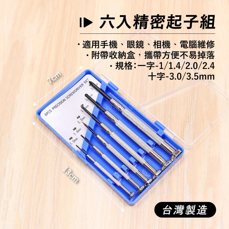 附發票「工具仁」台灣製造 六入 螺絲起子 精密起子 十字起子 一字起子 迷你起子 電腦起子 鐘錶 模型