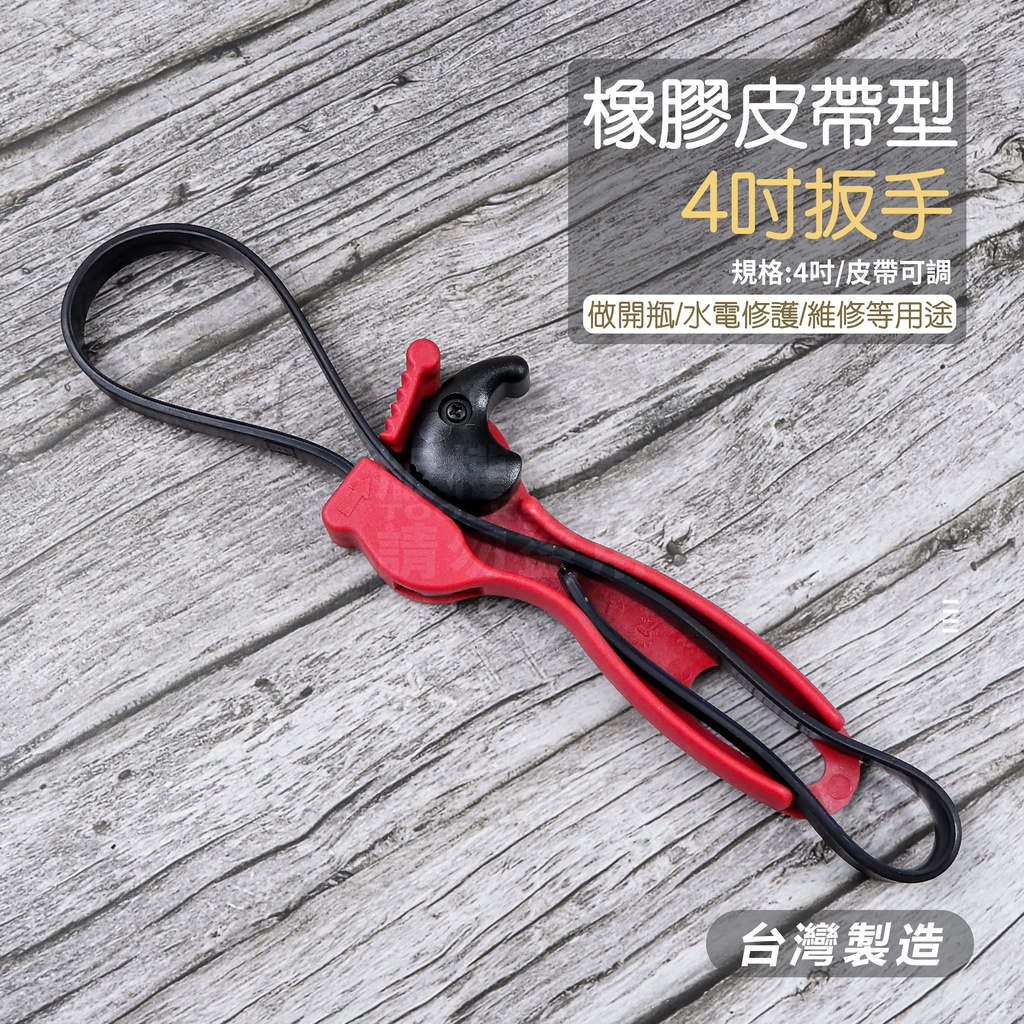 附發票「工具仁」台灣製 皮帶扳手 4吋 皮帶管鉗 開罐器 橡膠萬用管鉗 扳手 油芯皮帶板手 皮帶管子鉗 鍊管鉗