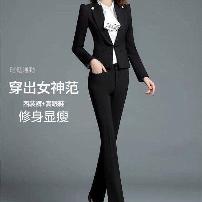 西裝褲女黑色春秋冬高腰直筒修身職業裝正裝褲西褲工作長褲工裝褲