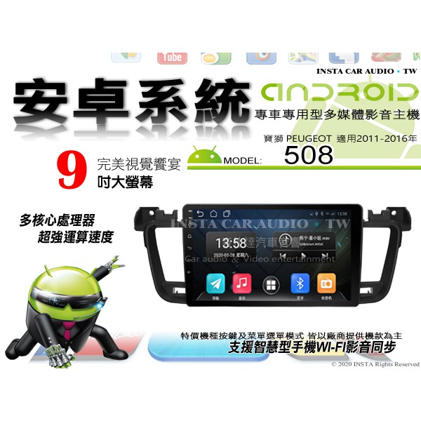 音仕達汽車音響 PEUGEOT 508 11-16年 9吋安卓機 四核心 八核心 WIFI 鏡像顯示 IPS 導航 藍芽